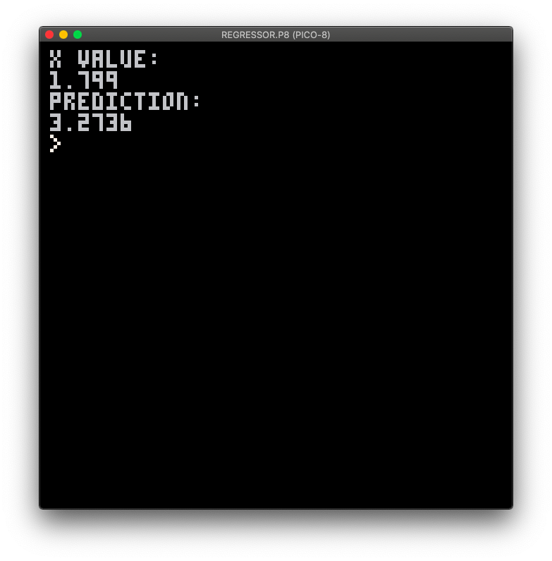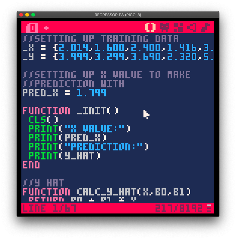 Creating a basic linear regression model in PICO-8 environment from scratch.
